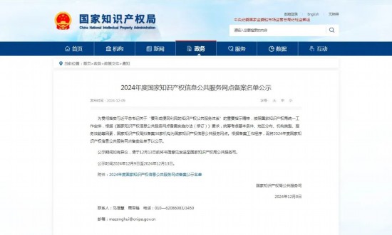 近日,國家知識產權局正式公示“2024年度國家知識產權信息公共服務網點備案名單”,全國共有36家單位入圍,其中,長春新區企業中知珺德知識產權服務(長春)有限責任公司為吉林省本批次唯一入選機構,也是吉林省首家獲批國家知識產權信息公共服務網點的民營企業。 國家知識產權信息公共服…