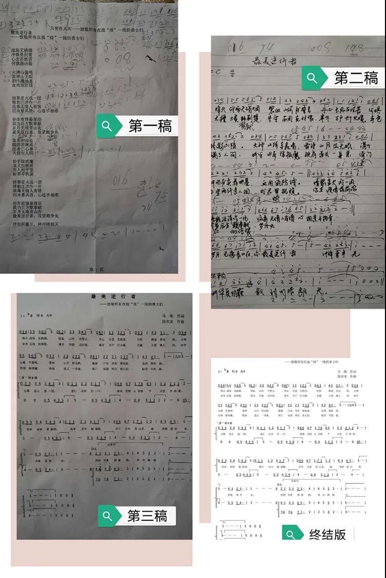 接到段雙龍副校長的邀約后,馬剛老師有感于在這場沒有硝煙的戰場上,那些用生命守護生命,用堅強守護堅強,用大愛譜寫著一曲波瀾壯闊的動人之歌,所以起筆寫下“烽火戰場無硝煙,碧血山河書誓言”,僅用半天時間就完成了《最美逆行者》的歌詞。段校長利用在校值宿的時間,和馬老師在旋律和歌詞上又進一步打磨,力求達到最好的藝術效果和宣傳效果。