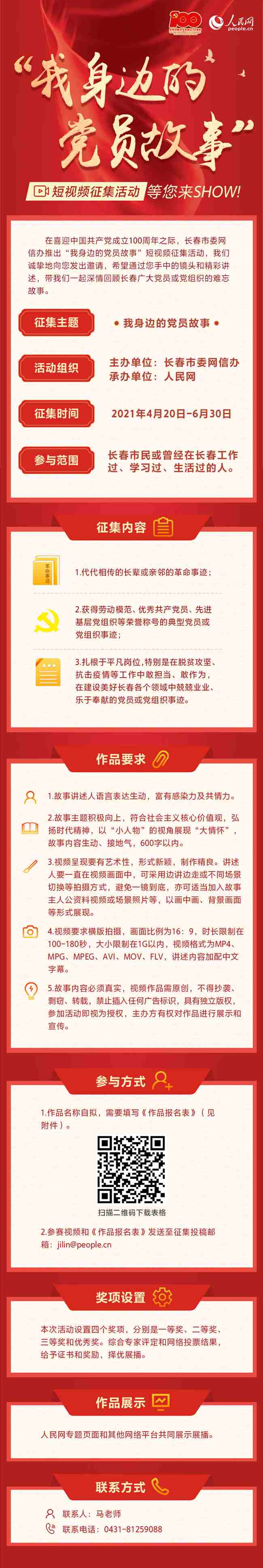 在喜迎中國共產黨成立100周年之際,長春市委網信辦推出“我身邊的黨員故事”短視頻征集活動,我們誠摯地向您發出邀請,希望通過您手中的鏡頭和精彩講述,帶我們一起深情回顧長春廣大黨員或黨組織的難忘故事。
