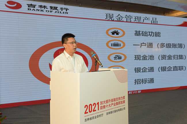 陳宇龍在致辭中提到,吉林銀行已正式跨入百億注冊資本城商行行列,作為省內最大法人金融機構,吉林銀行貸款投放總量和增量均居省內金融機構首位,普惠型小微企業貸款余額、增量和支小再貸款投放量均居全省同業首位。吉林銀行以此次銀企對接活動為契機,研究探討十大集群產業項目需求,密切建立銀農合作關系,進一步立足農業農村領域經濟發展,在吉林省農業農村的政策支持與指導下,健全“三農”金融服務體系,加大資源支持力度,擴大基礎金融服務覆蓋面,為農產品加工企業提供特色化、差異化的金融服務。