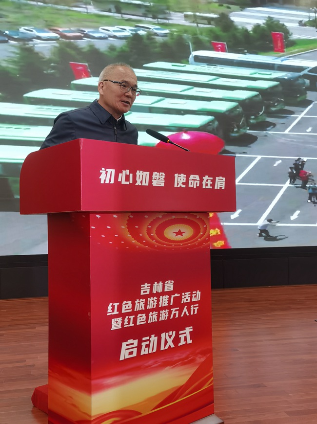 隨后,全省紅色旅游萬人行啟動儀式主會場與分會場進行視頻連線,石玉鋼部長宣布全省紅色旅游萬人行活動啟動。分會場紅色旅游團 8 輛客車啟動,載著游客們前往金伯陽犧牲地、東岔抗日根據地、柳河“五七”干校、河里會議舊址、集安鴨綠江國境鐵路大橋、白雞峰紅色抗聯文化園、楊靖宇將軍殉國地、四平戰役紀念館等特色鮮明的吉林紅色旅游地,探尋一處處紅色足跡、重溫一段段崢嶸歲月。