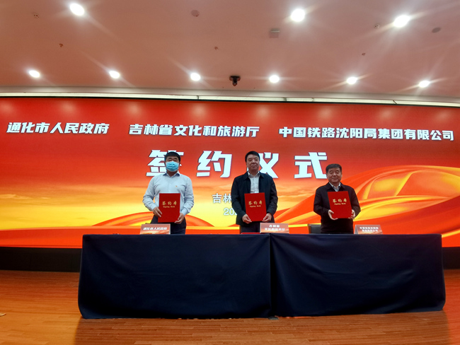 以紅色文化為底蘊,以紅色資源為依托,吉林發展紅色旅游具有得天獨厚的優勢,F場,吉林省文化和旅游廳副廳長金旭東分別與通化市人民政府、中國鐵路沈陽局集團有限公司簽訂《革命文物保護和紅色旅游戰略合作協議》《深化鐵路+旅游戰略合作框架協議》。
