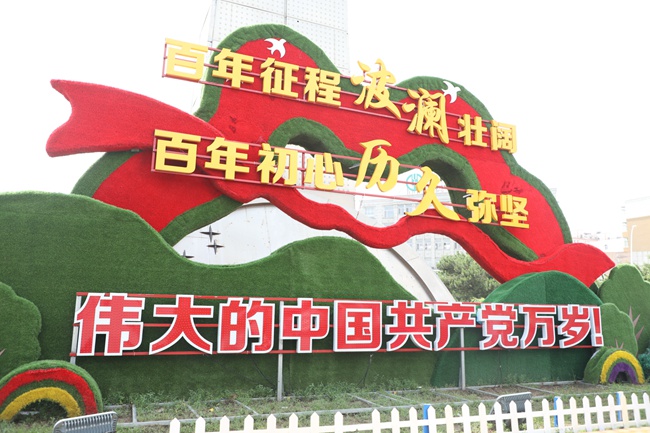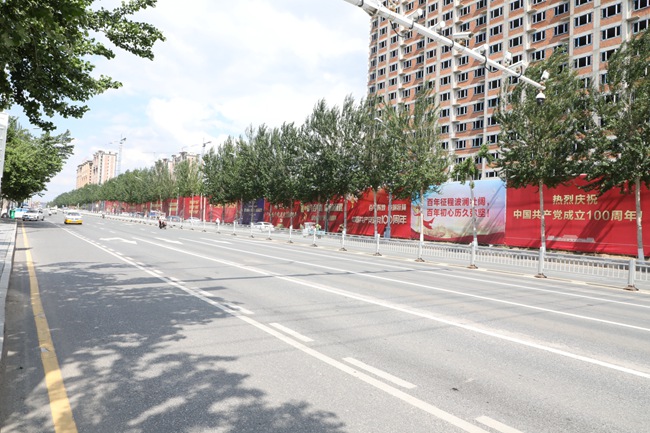 為做好慶祝中國共產黨成立100周年的社會宣傳工作,我市精心策劃主題宣傳活動,城管執法局、市場監管局、市區各街道辦事處,向沿街商戶發放了國旗,利用沿街商戶LED電子屏滾動播出宣傳標語;城管執法局在高速路口設置了主題景觀小品;住建局設計20條慶祝建黨100周年標語,將200余塊圍擋安裝在各項目工地,通過多種形式營造濃濃的“紅色氛圍”。除此之外,在市區公交車、出租車頂燈、路燈兩側也都能看到慶祝建黨100周年標語,營造出濃厚的喜慶氛圍。