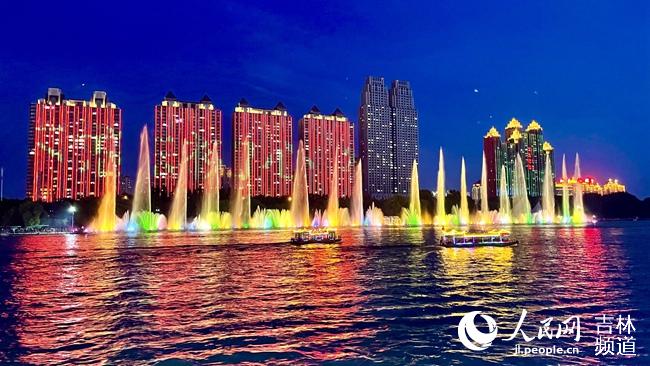 人民網吉林7月3日電 (李思玥)7月2日晚,隨著松花江兩岸建筑燈光的點亮,2021吉林市松花江避暑休閑季在清涼舒爽的共和國廣場啟幕。