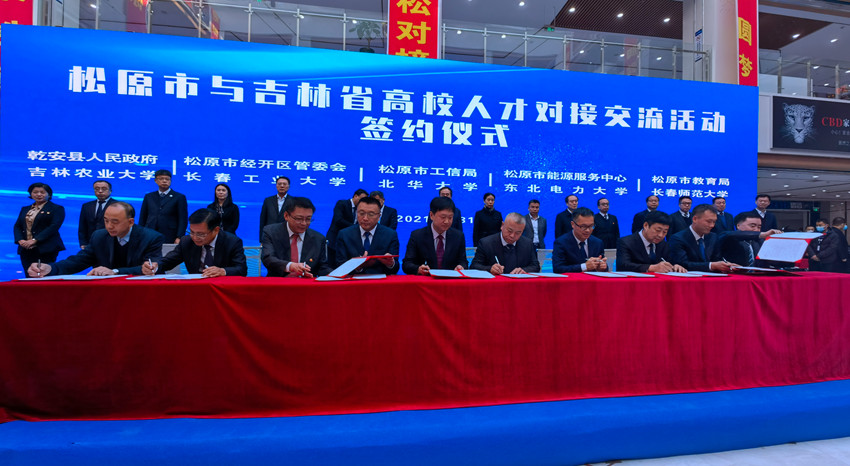 本次人才對接交流活動上,來自省內的十所高校與松原有關縣(市、區)、開發區、市直部門和企事業單位進行了現場簽約。