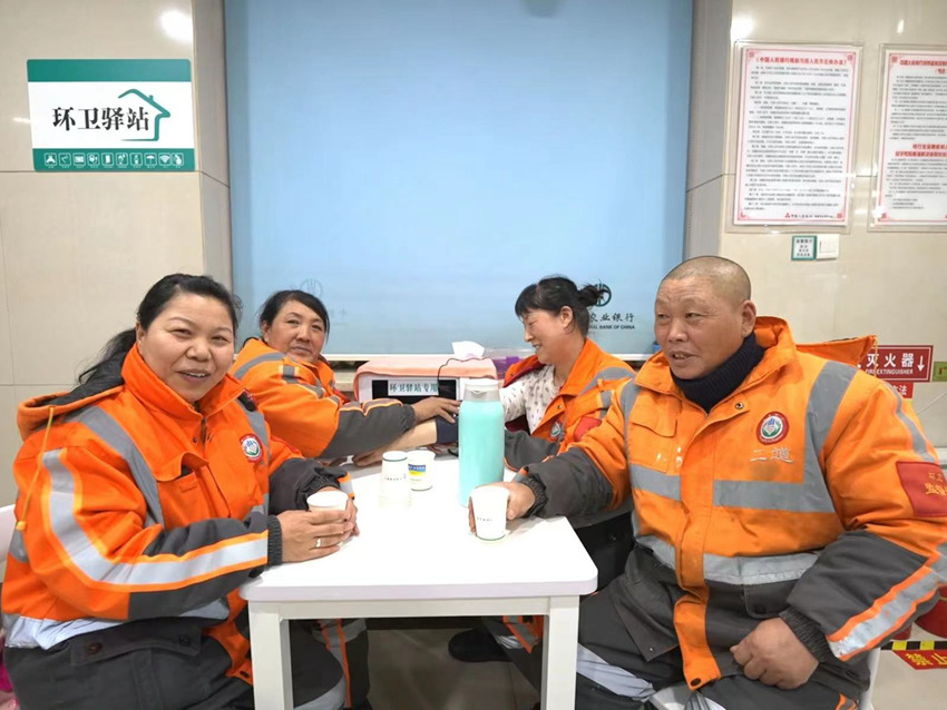 隆冬時節,在農行長春二道支行營業室,四、五名環衛工人正圍坐在桌子旁喝著熱水休息!稗r行專門為我們設立了環衛驛站,水壺、醫療用品等一應俱全,在這里就像在自己家一樣!”“外面還為我們準備了工具箱,掃帚、鐵鍬這些工具就近存放,實在太方便了!”環衛工們紛紛點贊。