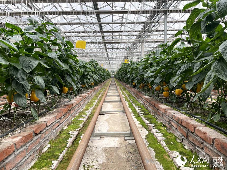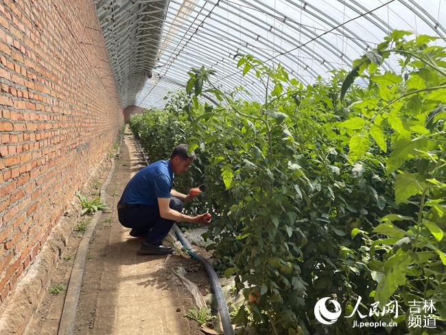 榆樹興隆農牧專業合作社技術員正在查看番茄長勢。人民網李思玥 攝(資料圖片)
