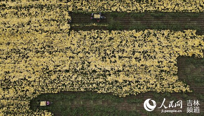 九臺區其塔木鎮中草藥現代特色農業示范基地內村民采摘菊花。人民網 李成偉攝(資料圖片)