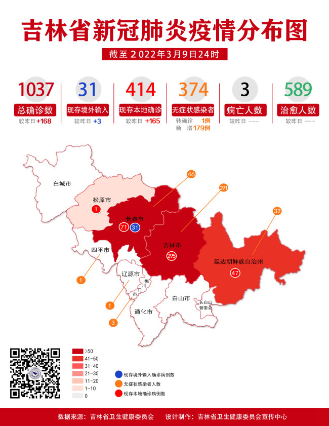 吉林省新冠肺炎疫情分布圖(2022年3月10日公布)