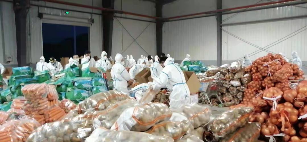 一位參與分裝蔬菜的志愿者在朋友圈向長春市民喊話:長春的領導老師同學老鐵們,幾千通化蒙面大白凌晨三點開始愛心接力打包的茄子辣椒土豆洋蔥們正在跟春天一起來到春城,祝大家戰勝疫情,蘸醬菜多吃!