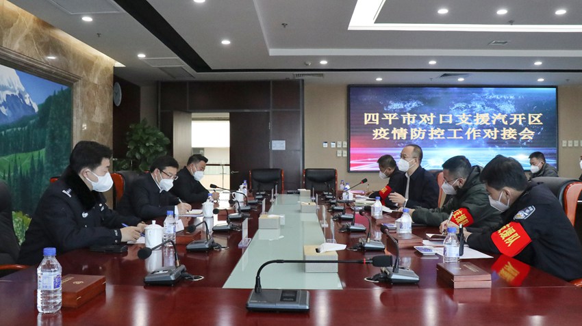 在對口支援對接會上,汽開區黨工委副書記、管委會主任朱光明介紹了當前全區疫情防控工作進展情況,并對四平市支援隊的到來表示由衷的感謝。他說,面對嚴峻的疫情形勢,相信在多方的共同努力下,定能打贏這場疫情防控保衛戰。