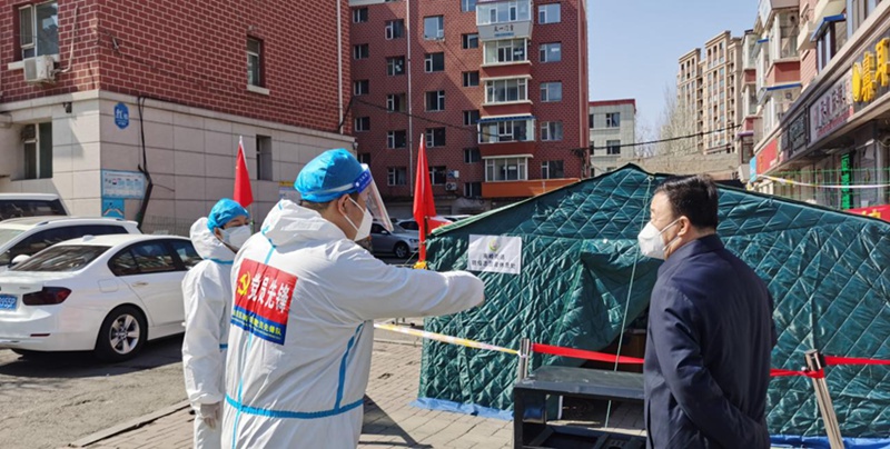 吉林省委常委、組織部部長張恩惠隨機抽查社區管控黨員先鋒崗情況。