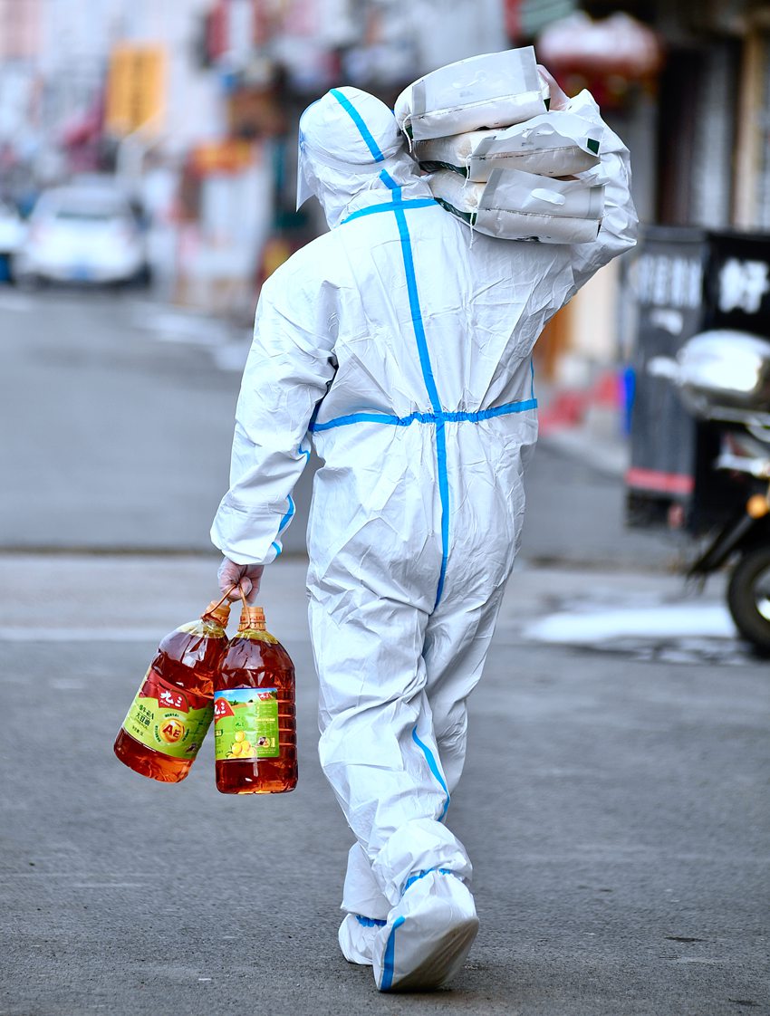 同時,為全力保障好市民的“菜籃子”“米袋子”“果盤子”,打通城市配送“最后一百米”,長春市正全面發動社區工作人員、下沉機關干部、志愿者在做好個人防護且無接觸的基礎上,幫助市民取貨、送貨,“封控區”物業人員和志愿者直接送上門,盡快釋放末端配送隊伍,強化配送力量,盡早把蔬菜包送到居民家中。