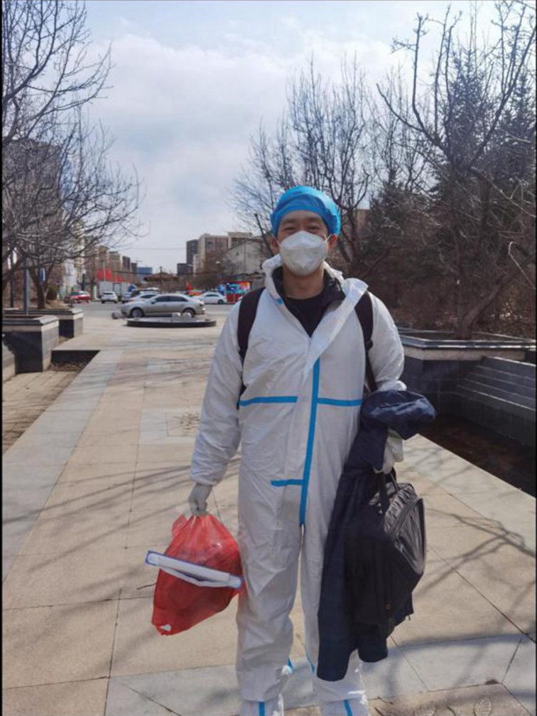 王銘經常說,“防疫一線做‘小事’,做好小事無大事!笔聦嵣弦彩侨绱,他在每一件“小事”上都全力以赴。3月26日,南湖街道轄區內確診了一位特殊病人,是援建方艙后還在隔離期間的小伙子,在得知患上新冠肺炎后,小伙子情緒低落,因恐懼傳染給家人,產生情緒波動。王銘知道后,主動加他微信,與其交流談心,幫其緩解壓力,從身體狀況聊到志愿者經歷再到興趣愛好,期間王銘一直積極協調,盡早幫助其轉運,小伙子在方艙安頓好后,第一時間給王銘發來語音:“雖然我得了新冠肺炎,但我不后悔去當志愿者,假如再有一次機會選擇的話,我還會去!彪m然隔著電話屏幕,但“溫暖”在傳遞。除了白天志愿服務隊的日常工作外,下班后王銘還會幫助社區做一些物資搬運、配送等力所能及的“小事”。一次外出檢查歸來途中,王銘發現街邊焦急地站著三個人,經仔細詢問,原來是一位年近80患有尿毒癥的老大爺要去透析,因資源緊張,現在聯系不到去醫院的車輛,王銘二話不說就幫助其轉運到進行透析的醫院,下車前王銘還留下電話號碼,叮囑到:“以后找不到車輛,就打我電話!