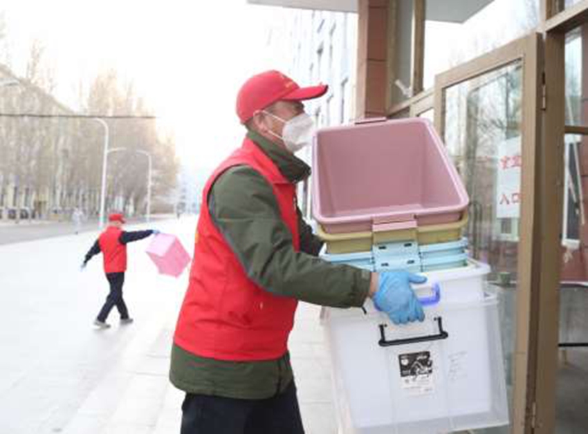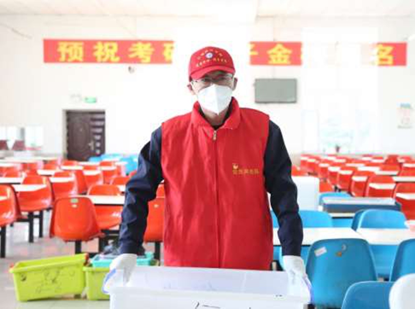 除了統籌謀劃防控工作,他們還跟年輕人一樣,手提肩扛送水送餐、運送物資,給予學生們父母般的照顧。食堂、宿舍、超市、倉庫,到處都有他們忙碌的身影,汗水打濕了花白的頭發,浸透了黨員志愿者的“紅馬甲”,如果不是勞作以后略顯遲滯的腳步和辦公室的藥瓶、熱水袋,可能連他們自己都忘記了歲月留下的勞損、鐫刻的年輪。疾風知勁草,烈火煉真金,老黨員們用實際行動詮釋歲月易老、初心如磐。