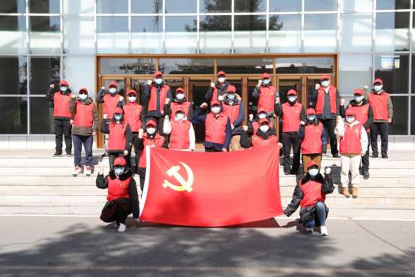 奮戰在防控一線的42名黨員教師志愿者組成的“黨員突擊隊”,有老黨員,也有小年輕,他們身著“紅馬甲”,奔忙在巡邏值守、核酸檢測、環境清理、食堂物資搬運、餐食配送、后廚幫廚各個崗位,甘做學!耙粔K磚”,哪里需要往哪搬!拔覉竺薄拔夷苋ァ笔屈h員突擊隊隊員工作群里最常說的話,他們站排頭、做表率,用愛守護學生安全,用心詮釋責任擔當,踐行著共產黨員的錚錚誓言,讓黨旗在疫情防控一線高高飄揚!