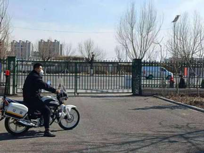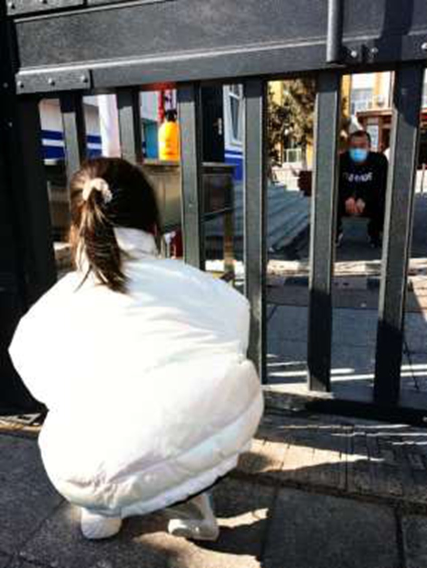 在校園圍欄處遠遠眺望的三個人,小的有點分辨不清,那是校園安全處王群的父母和兒子,同樣是分別許久,同樣是白城市還未按下“暫停鍵”的時候,年幼的稚子、年邁的父母,只能隔著圍欄,遠遠地看一眼正在工作的父親、兒子,告訴他家里都好,你放心守護學校的孩子們吧。