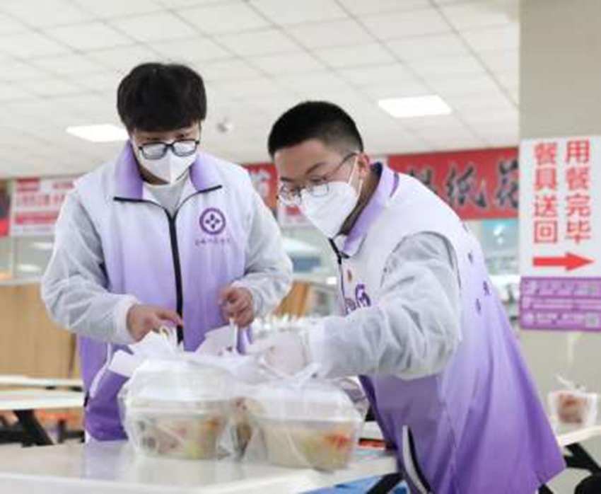 杜老師的女兒杜傳是經濟管理學院一名教師。3月11日,有著做過志愿服務經驗的她,與父親一起申請駐校。駐校期間,她積極參與維護核酸檢測秩序、物資進校消殺、食堂幫廚、環境清理、維護食堂超市秩序等志愿工作。杜傳表示,學校是我們共同的家,能跟爸爸并肩作戰,守護校園防控安全,既有底氣也感到自豪。