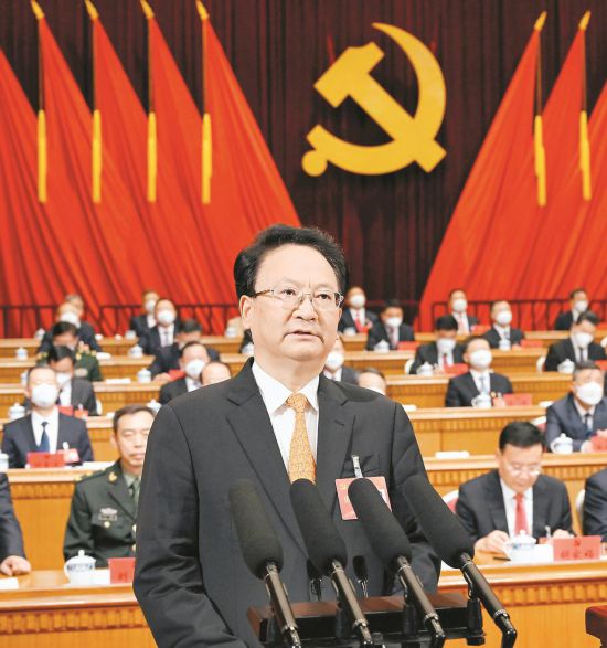 6月19日,中國共產黨吉林省第十二次代表大會在長春市隆重開幕。景俊海代表中共吉林省第十一屆委員會向大會作報告。(記者鄒乃碩 攝)