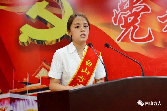 吉林省酒文化博物館銷售二部負責人李萬和吉林省酒文化博物館紅酒莊店長廉雪分別代表新黨員、“白山方大抗疫先鋒”分別作了表態發言。