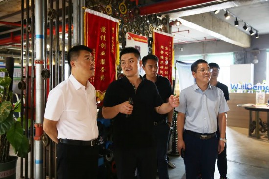 7月28日上午,梅河口副市長霍光一行到擺渡創新工場參觀調研,擺渡創新工場總經理劉錚陪同調研。