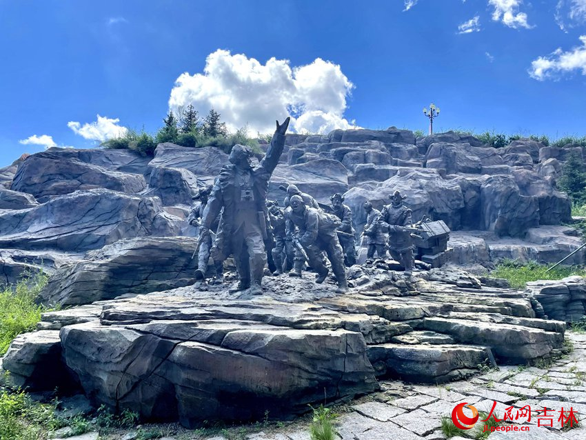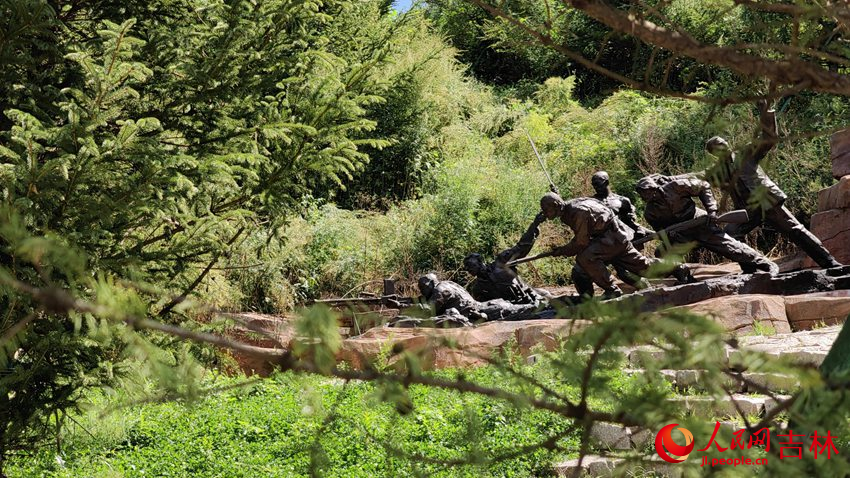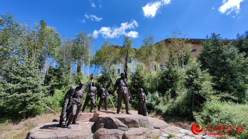 雕塑再現長崗大捷后楊靖宇將軍和戰士們慶祝勝利的情景。人民網 李成偉攝