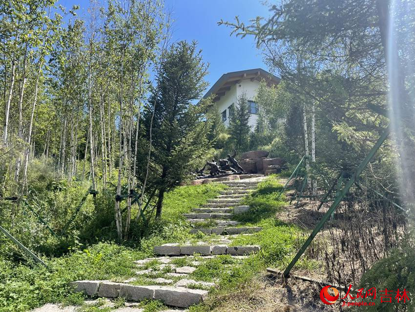 雕塑立于草木之中,仿佛置身密林深處。人民網 李成偉攝