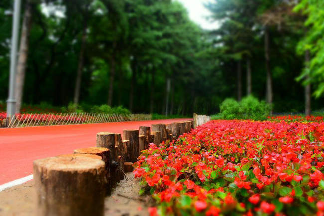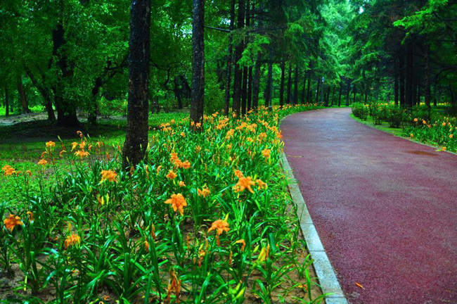 2019年,為了貫徹生態文明建設的戰略方針,以建設綠色宜居森林城為契機,南湖公園以綠地修復和植物造景造園為改造方向,建設健康路徑千米花道,在千米花道沿線還設置活動場地,并在市民常經過區域設置鋪裝石板路,供市民游憩,充分體現人性化設計。