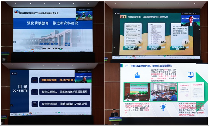 12月16日,由中國高等教育學會高等農林分會指導,吉林省教育廳主辦,吉林農業科技學院承辦的吉林省新農科建設工作推進會暨耕讀教育論壇順利召開。會議以線上線下相結合的方式召開,線下會場設在吉林農業科技學院。
