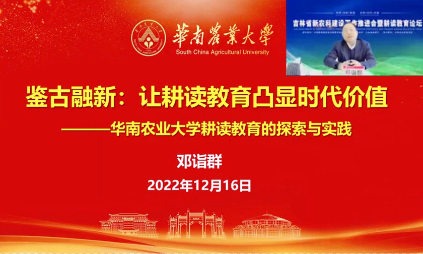 會議隨后召開了耕讀教育論壇,吉林省教育廳高教處處長曾繁明主持論壇。吉林大學、吉林農業大學、北華大學和吉林農業科技學院代表,結合現代耕讀教育理念、實踐經驗和舉措進行了耕讀教育成果匯報。華南農業大學副校長鄧詣群教授和西北農林科技大學教務處處長陳遇春教授應邀作報告,從建立和完善具有吉林特色的耕讀教育體系,為吉林省全面推進鄉村振興、加快實現農業農村現代化提供強有力的人才支撐方面發表重要見解。