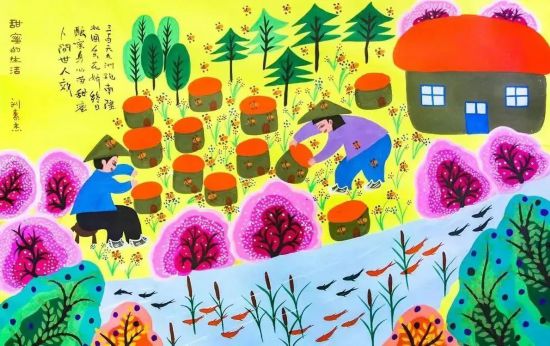 東豐縣是我國三大農民畫鄉之一,這里的農民畫飽含濃郁的北國風情,色彩鮮艷奪目,裝飾性極強,往往用質樸的筆觸,將最樸實平凡的生活場景生動地表現出來。