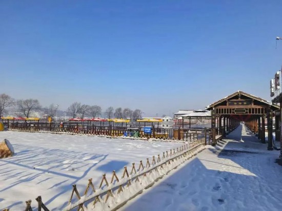 茅草屋、籬笆院……無垠的天空呈現出一片碧藍,澄凈的沒有一絲遮擋,好一幅美麗鄉村圖。走進冰雪樂園,獨具特色的樹掛、冰掛、雪雕塑映入眼簾,冰上自行車、漂移車等各色冰上游樂項目冬趣十足。