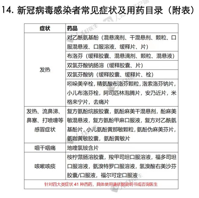 13.?新冠病毒感染者常見癥狀及用藥目錄(附表)