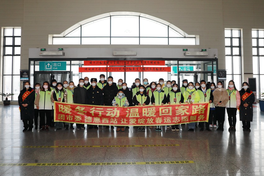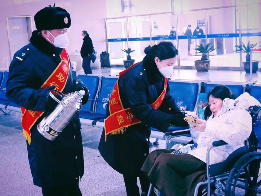 1月7日,春運首日,中國鐵路沈陽局集團公司長春車務段德惠西站候車室內一派喜慶熱鬧的景象。候車室內張燈結彩、裝扮一新,共青團德惠市委、長春車務段團委聯合德惠市志愿者協會共同舉辦“情暖旅途、讓愛綻放”春運志愿服務啟動儀式 ,長春車務段2023年春運工作就此拉開序幕。