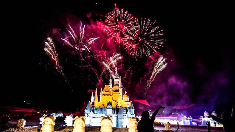 除夕晚上,長白山魯能勝地音樂煙花秀。(長白山魯能勝地供圖)