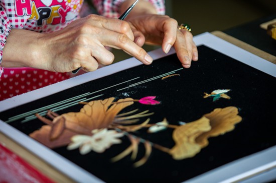 馮小娟來自雄安新區安新縣端村鎮中后街村,是土生土長的白洋淀水區百姓。因自己的父親專門從事傳統手工藝品制作,還被評為河北省工藝美術大師,馮小娟從小耳濡目染,對手工藝、美術繪畫產生了濃厚興趣。 17歲開始,馮小娟正式學習制作蘆葦畫,至今已有30年。在長時間的實踐、摸索中,她和父親在蘆葦畫制作工藝上進行了多次創新,包括設計構圖、打版、拼接等方面,不僅提升了制作效率,讓蘆葦畫這種手工藝品愈發精致生動?!疤J葦畫是白洋淀的特色民間藝術,原材料就是白洋淀內生長的蘆葦。制作一幅蘆葦畫需經過剪、烙、燙、熨、拼合、粘結等工藝流程?!瘪T小娟說,她希望蘆葦畫制作工藝能夠不斷得到傳承弘揚,讓更多的人了解白洋淀,了解雄安新區的優秀傳統文化。人民網 李兆民攝