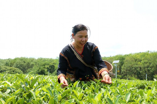 符小芳是海南白沙黎族自治縣遠近聞名的鄉村振興帶頭人,多年來她積極幫肋家鄉的黎族姐妹脫貧,帶她們走向共同富裕之路。2008年,她將有機茶概念引進白沙,借著當地綠水青山的自然稟賦,帶領5戶農民開辟出茶園探索種植有機茶。 如今,茶園面積從最早的22畝擴大到600多畝,合作社成員也從5戶增加到現在近200戶,還先后帶動了365戶村民增收。經過這些年的發展,她種植的有機茶通過了中國有機認證,還有美國、歐盟有機認證,暢銷世界多個國家。2023年3月1日,全國婦聯在京舉行“三八”國際婦女節紀念暨表彰大會上,白沙黎族自治縣五里路茶葉專業合作社婦聯主席符小芳被授予全國三八紅旗手稱號。人民網 符武平攝