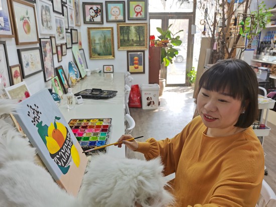 在吉林長春畫千工作室,畢業于東北電力大學藝術設計專業的美術老師王鶴橋閑暇之余仍醉心繪畫,曾獲得第二屆全國大學生廣告藝術大賽吉林賽區三等獎。人民網記者 王帝元攝