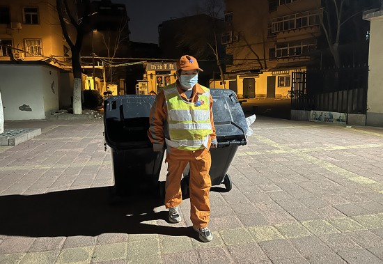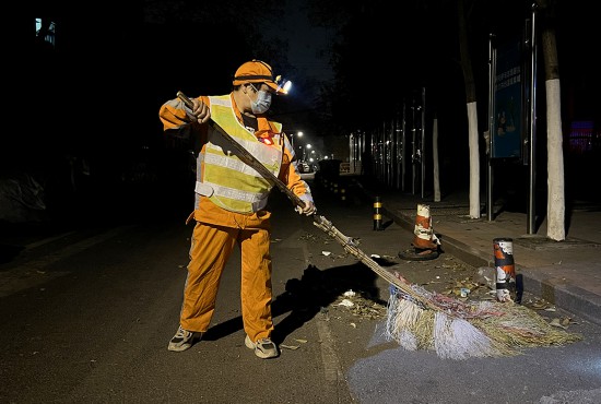 凌晨4點,山東濟南歷下區55歲的環衛女工王海菊借著路燈的光,開啟了一天的環衛保潔工作。人民網 劉祺攝