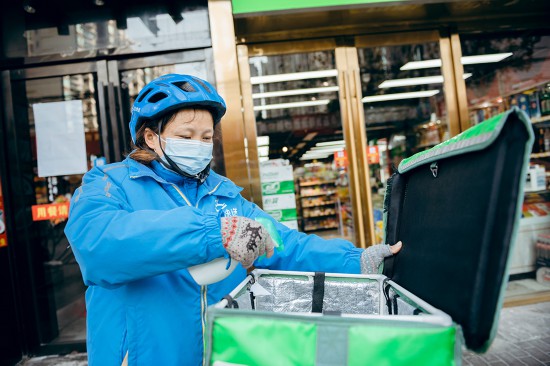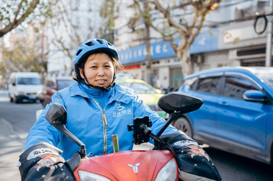 上海,快送女騎士武麗正在街頭配送跑單。跑單7年來,武麗用心送完了近16萬單,行程超30萬公里。人民網記者 龔莎攝