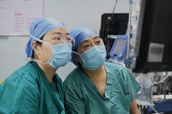 3月8日上午,河南胸科醫院心血管外科手術部內,麻醉醫師劉宿平(右)與楊晨(左)緊盯儀器,嚴密監測各項數值變化,確保手術順利進行。人民網記者 王玉興攝
