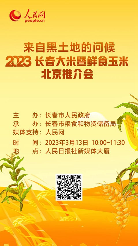 人民網長春3月11日電 (馬俊華)3月13日,由長春市人民政府主辦、長春市糧食和物資儲備局承辦的2023長春大米暨鮮食玉米北京推介會將在人民日報社新媒體大廈舉行,人民網將進行全程直播。