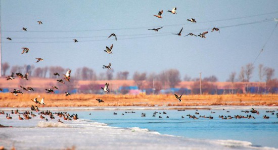松原市查干湖景區迎來大批遷徙候鳥