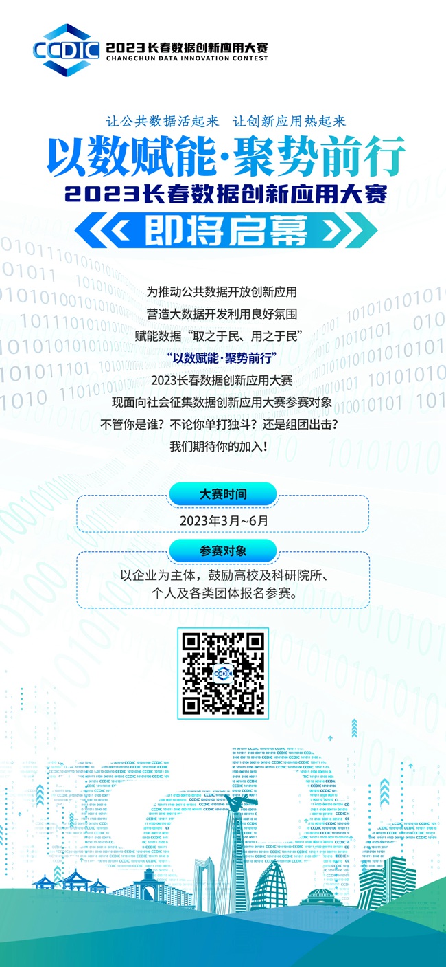 為全面落實黨中央、國務院一體化推進數字中國建設的總體部署,搶抓數字長春創新發展新機遇,長春市政務服務和數字化建設管理局聯合長春凈月國家高新技術產業開發區共同主辦2023長春數據創新應用大賽,賽事時間為3月至6月。