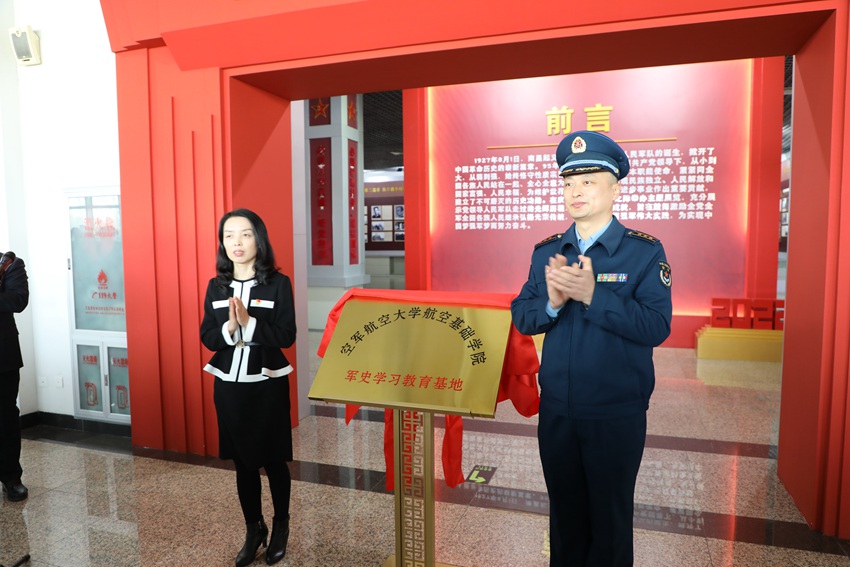 人民網長春3月30日電 (李思玥)為用好紅色資源,傳承好紅色基因,29日,空軍航空大學某學院“軍史學習教育基地”揭牌儀式在長春市革命烈士陵園舉行。
