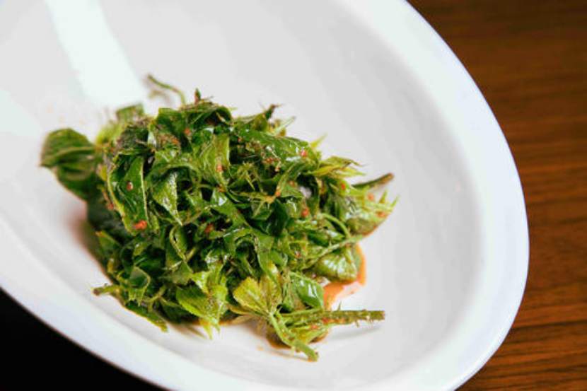 刺五加攤雞蛋、大葉芹煮湯、婆婆丁蘸醬……“靠山吃山”,早春時分,爬山摘菜是長白山區老百姓的老習慣。