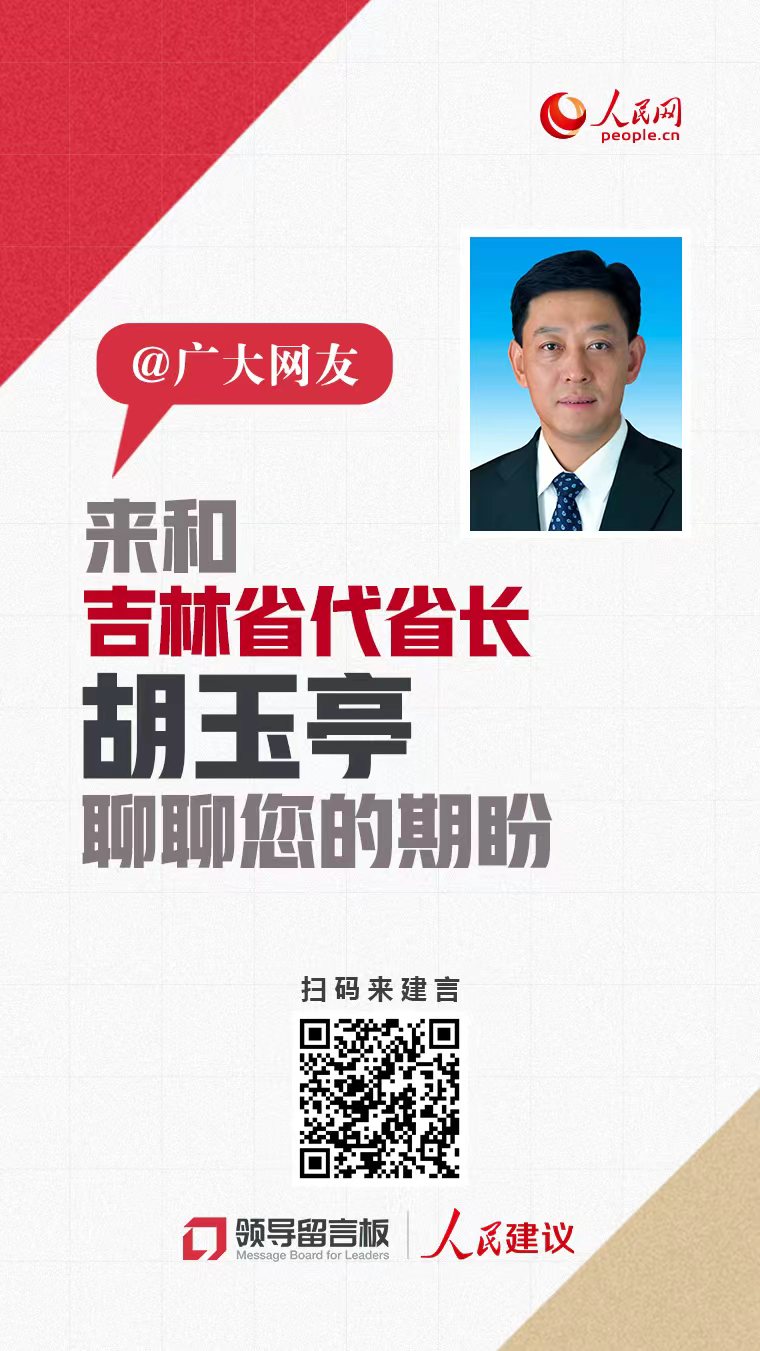 您對吉林的發展有何建議和期盼?歡迎通過人民網“領導留言板”留言,共繪美好生活圖景!