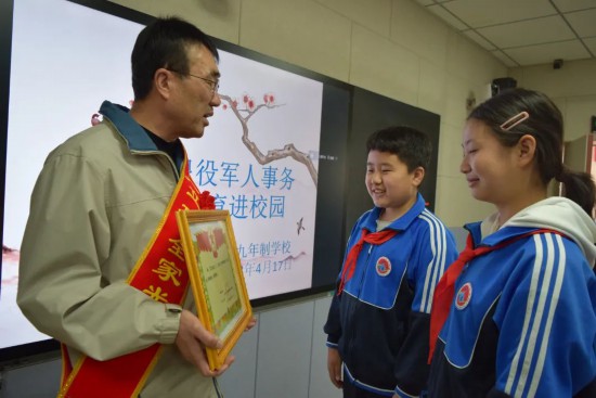 榜樣是一面旗幟,用身邊事教育身邊人,能夠起到春風化雨、潤物細無聲的效果。立功受獎送喜報工作進校園,讓師生們見證軍人軍屬的榮光,營造尊崇軍人的濃厚氛圍,以耳濡目染、潛移默化的方式增強國防教育的吸引力,激發同學們學習知識的動力和獻身國防建設的責任感和使命感,讓擁軍崇軍情懷代代相傳。