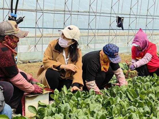 正在收割菠菜的孫素芳向記者講述幸福生活