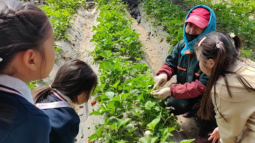 4月,北方大棚草莓進入成熟期。24日,長春市伊頓睿思國際幼兒園為秉承自然教育理念,帶小朋友們來到奢愛良蔬有機果蔬農場,通過聞、品、摸、看、聽等方式,讓小朋友們走近果蔬種植,邊玩邊學的同時,體驗采摘草莓的快樂。